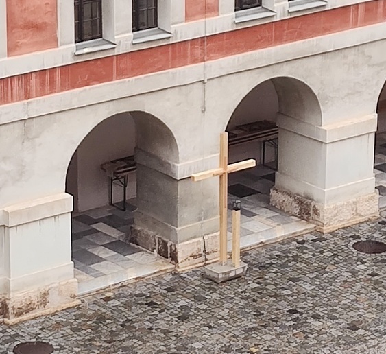 Für die zahlreichen Besucherinnen und Besucher unseres Innenhofs ist es nun ein klar erkennbares Symbol unseres Glaubens und für uns selbst ein neuer geistlicher Mittelpunkt, an dem wir besonders für den Frieden in der Welt beten.
