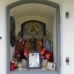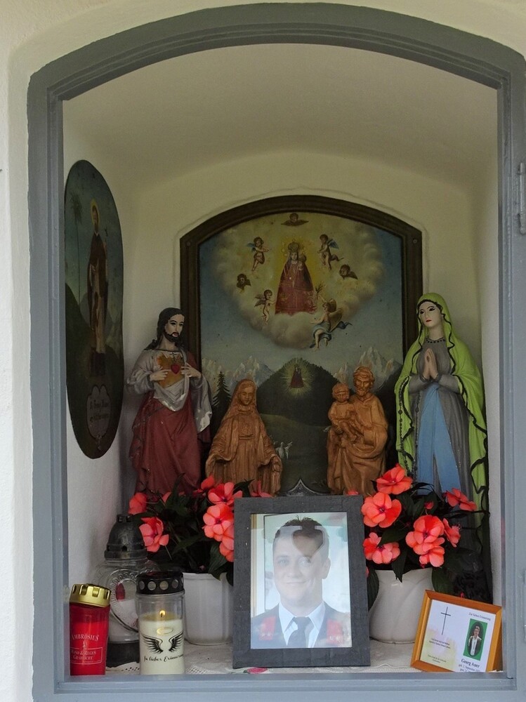 Am 21. Mai 2023 war auch der 8. Todestag des allzu früh im Alter von 42 Jahren verstorbenen Sohnes Georg Auer. Zur liebevollen Erinnerung wurde ein schönes Bild von ihm und ein Trauerandenken ins Zentrum der Mauernische gestellt.