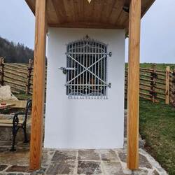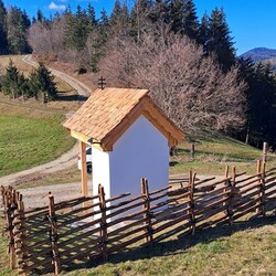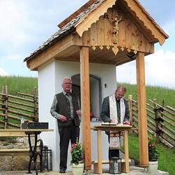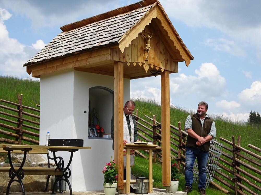 Das morsche Holzvordach wurde durch eine gefällige Lärchenholzstruktur ersetzt. Das Dach wurde mit neuen Holzschindeln gedeckt und das Wetterkreuz wiederum am First befestigt. Ein einzigartiges Novum ist die Installierung einer Solarbeleuchtung für die Nacht.