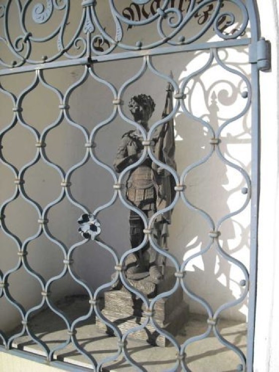 Der heilige Mauritius war der Überlieferung nach ein römischer Offizier, der wie alle anderen Mitglieder seiner in Agaunum (heute St. Moritz in der Schweiz) stationierten Legion aus Theben in Ägypten stammte und Christ war. Die Legion weigerte sich, den römischen Göttern zu opfern und an Christenverfolgungen teilzunehmen. Daraufhin ließ ein Mitregent von Kaiser Diokletian zur Abschreckung jeden 10. Mann umbringen. Die christliche Legion zeigte sich jedoch von dieser drakonischen Maßnahme unbeeindruckt. Anfang des 3. Jahrhunderts starb dann Mauritius den Märtyrertod. Auf Veranlassung des deutschen Kaisers Otto I. bestätigte Papst Johannes XII im Jahr 962 die Verehrung des Heiligen, dessen Gedenktag nun am 22. September gefeiert wird. Der Name „Mauritius“ ist eine Weiterbildung von lateinisch „Maurus“, das heißt „der aus Mauretanien Stammende“ bzw. „der Mohr“. Der heilige Mauritius wird daher immer als dunkelhäutiger Soldat dargestellt wie im Bildstock vor der Murbrücke. Er ist unter anderem der Patron der Soldaten, Schmiede und Glasmaler, hilft bei Pferdekrankheiten, Gicht und Ohrenleiden.