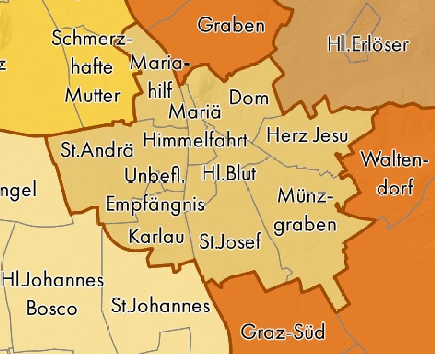 Die Diözese Graz-Seckau ist gegliedert in 8 Regionen, 50 Seelsorgeräume und 388 Pfarren.