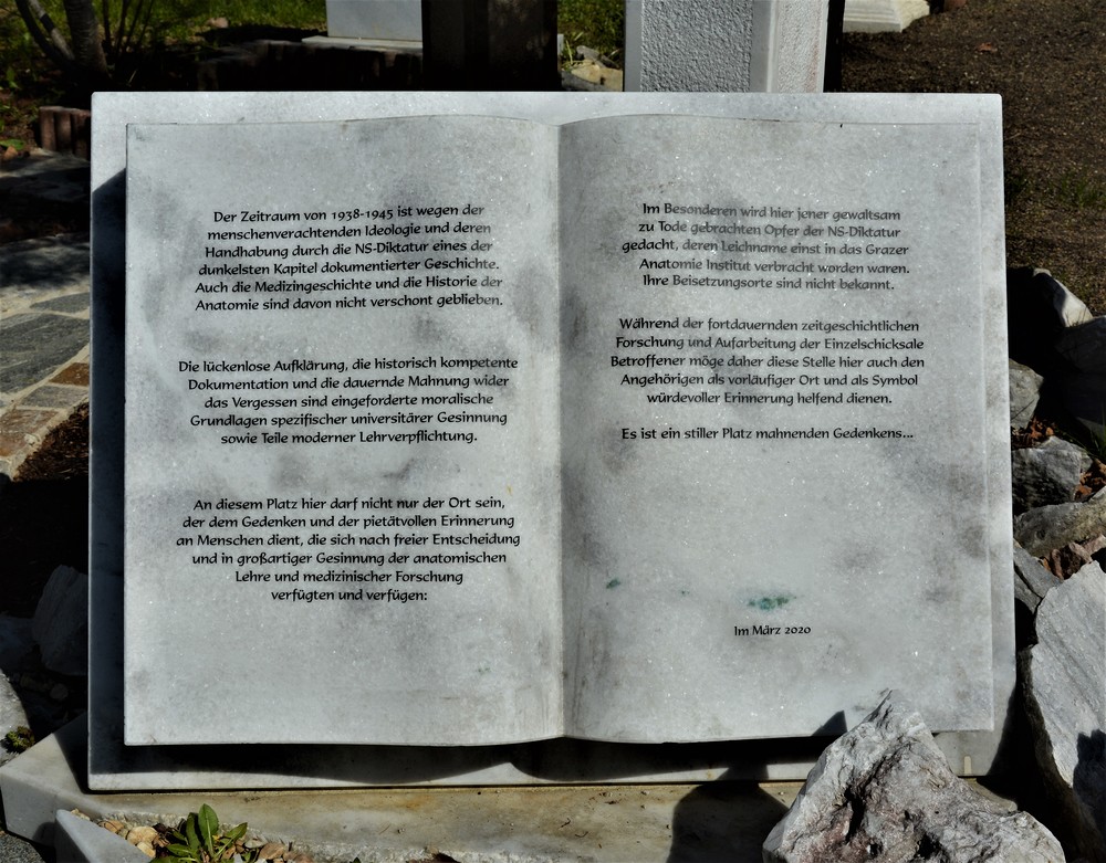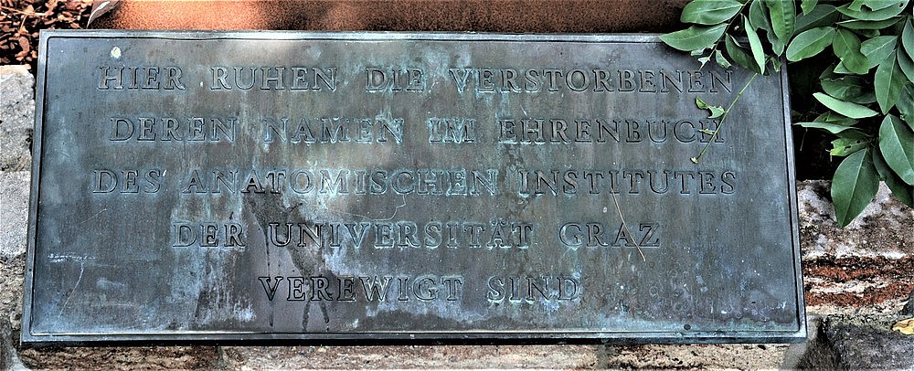 HIER RUHEN DIE VERSTORBENEN DEREN NAMEN IM EHRENBUCH DES ANATOMISCHEN INSTITUTES DER UNIVERSITÄT GRAZ VEREWIGT SIND